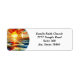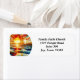 A simples etiqueta de retorno da igreja apresenta um pôr do sol colorido de vidro com cruz branca simples. Perfeito para correspondência da igreja ou eventos.