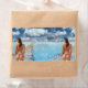 bebezinho de praia em thong bikini, personalize com sua própria saudação, nome, mensagem, etc