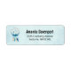 Etiquetas de endereço com uma coletora de sondas de cores bonito. Cor azul, turquesa e creme. Decorados com penas, miçangas e flores.