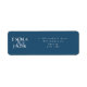 Add a polished finishing touch to your wedding stationery with this modern navy blue return address label, featuring bold couple names with a stylish ampersand monogram and crisp white typography. The clean, minimalist layout keeps your address easy to read while adding an elegant, contemporary look to invitations, save the dates, thank you cards, and everyday post. Easily customize the names and address to match your wedding suite, engagement mail, or new home stationery for a coordinated, professional finish.