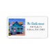 Vagas bonito mas quirky e azuis para casa com etiquetas de endereços de retorno de arte no convés e oceanos tropicais.