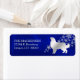 Esta etiqueta distintiva do endereço de retorno apresenta uma imagem prateada da silhueta Bernese Mountain Dog em frente a um spray de flocos de neve ornamentado prateada. A imagem é colocada sobre um fundo azul profundo gradiente. Seu texto personalizado está em prata correspondente à esquerda da imagem. Linda!