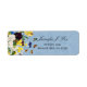 Rótulo de endereço de retorno de escrita boho elegante personalizável com lindos pansies de primavera femininos coloridos, narcisos e borboletas em um fundo azul pálido vitoriano vintage.