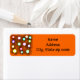 Essas etiquetas de endereço de retorno têm um design geométrico de círculos de diferentes cores com linhas sendo lançadas.