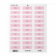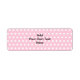 Etiqueta Bolinhas rosa, com texto preto personalizado.