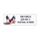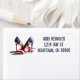 Calçados de salto alto inspirados na bandeira americana são posicionados sobre um fundo branco comum