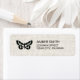 Estas etiquetas de endereço de retorno bonito e rústicas têm uma borboleta escura e branca minimalista sobre um fundo impressão de aparência de linho bronzeado. Na moda e etiquetas de endereço elegantes para o seu correio!
