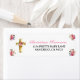 Convidar uma suma família y amigos a celebrar el bautismo de su é y envíe una invitación de bautismo con bonitas etiqueta de invitación de bautismo. Este diseño apresenta uma una hermosa cruz de oro y elegantes ramos de flores, rosas en la cruz y en cada esquina de la etiqueta del remitente. Modifique para requisitos particulares con su nombre y dirección. Cambie la fuente y el cor del texto o manténgalo como para su conveniencia. Etiquetas de remite perfetas para un bautizo de niña.