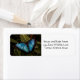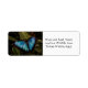 A borboleta Blue Morpho mostra suas brilhantes asas azuis ( 5 - 8 polegadas de extensão) enquanto repousa na folhagem na terra maravilhosa da borboleta. Foto de Ruth Jolly.