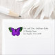 Rótulo de endereço de borboleta roxa e verde.