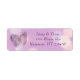 Rótulo bonito do endereço de volta do casamento da borboleta púrpura.