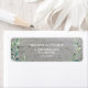 Galhos de oliveiras botânicas, folhas, sobre fundo de madeira, Etiquetas de Endereço de Devolução. Você pode mudar o texto facilmente.