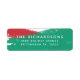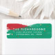 Essas etiquetas coloridas e modernas de endereço de retorno de feriado apresentam traços de pincel de água vermelho e verde com sotaques de pontos dourados falsos.