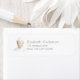Uma etiqueta de endereço com um talento budista. Uma imagem tranquila e pacífica de uma estátua do Buda, toda em branco. Símbolo de pureza e iluminação.