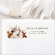 Etiquetas de endereço de devolução com tema de outono com design de buquê em aquarela com folhagem de outono neutra e uma abóbora branca.