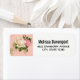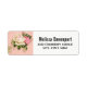 Etiquetas de endereço com um buquê de rosa floral com flores brancas e cor-de-rosa. O fundo é rosa com um padrão floral. Bonito e elegante design.
