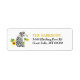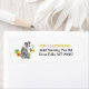 O lado esquerdo destas etiquetas de endereço de retorno apresenta uma imagem de um lindo Cão Pastor Australiano de cor azul entre girassóis espalhados. Seu texto personalizado está em ouro e preto à direita.