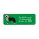 Festivo Personalizado Feriado Natal Bernese Mountain Dog vestido de chapéu santa e cachecol verde e branco segurando enfeites de natal vermelha na boca. Um rótulo de natal bonito para amantes de berner!