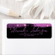 Design de etiquetas de endereço de retorno personalizadas e elegantes, com um fundo cor-de-rosa e preto cintilante com o seu nome escrito em um script moderno. O texto é totalmente personalizável.