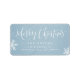 As etiquetas personalizadas de endereços de volta de Natal contêm a escrita branca caligrafia manuscrita "Feliz Natal" e os flocos de neve em fundo azul de inverno, simples, moderno e elegante.