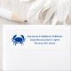 Etiqueta de endereço de devolução personalizada de caranguejo azul e branco. Texto azul personalizável, fundo branco sólido plano.