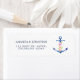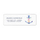 Tendy marinho e rótulos de endereços náuticos com tema náutico branco com uma âncora floral azul de cor d'água.