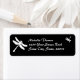 Esta bela etiqueta de endereço de retorno de casamento apresenta cores clássicas preto e branco com libélulas brancas e brancas bonito no lado. Convites correspondentes disponíveis no meu compro!
