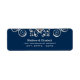 Etiquetas de endereço de retorno elegantes com um belo design florescente contra um fundo azul marinho.