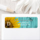 Crie seu próprio monograma, rústico, etiquetas de endereço de retorno de chá de girassol de madeiras rústicas. À esquerda está um monograma inicial centrado em um girassol amarelo-país no canto. À direita estão os nomes personalizados e o endereço do casal. Nota: Todas as imagens são impressas. Não madeira real. Pronto para personalizar o que você quiser- adicionar data, qualquer texto personalizado que você preferir. Rótulos de endereços iniciais de retorno do monograma russo country para amantes e jardineiros da natureza ao ar livre, mas também etiquetas de casamento perfeitas de noiva e noivos para temas de cor da turquesa de casamento rústico, casamentos populares de florestas boêmicas, casamentos temáticos ocidentais, casamentos de celeiros, casamentos outono ao ar livre e etiquetas de casamentos de países.