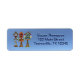 Três casas coloridas de pássaros de desenho animado contra um fundo de gradiente azul faz disso um rótulo de retorno muito bonito. O nome e o endereço personalizáveis têm o aspecto de serem aumentados.