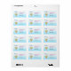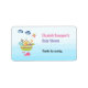 Etiquetas de endereço para um chá de fraldas com uma ilustração do estilo berçário giro com uma arca cheia de animais selvagens e uma borboleta sobrevoando e uma baleia amigável saltando água abaixo. Algumas nuvens azuis flutuam por aqui. Colocado sobre um fundo azul-claro em massa.