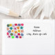 Essas etiquetas de endereço de retorno têm um design de flores e gotas de chuva em fundo branco.