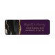 A borda esquerda desta elegante e moderna etiqueta de endereço de retorno de convite de casamento apresenta uma cor d'água preta, borda agitada com falso brilho dourado. O texto personalizável combina um script de escrita manual dourado e fontes de impressão em fundo roxo profundo.