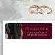 A borda esquerda desta elegante e moderna etiqueta de endereço de retorno de convite de casamento apresenta uma cor d'água preta, borda agitada com falso brilho dourado. O texto personalizável combina o script de escrita manual dourada e as fontes de impressão em fundo burgundy.