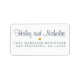 Chic, moderno e simples etiquetas de endereço de volta de casamento mostra seus nomes em elegante caligrafia manuscrita e tipografia moderna, com um coração bonito em ouro clássico. Basta adicionar seus nomes e endereços a todas as suas datas, convites para casamento, envelopes RSVP e presentes para casamento. Desenvolvido exclusivamente para você pelo Happy Dolphin Studio. Se precisar de ajuda ou produtos correspondentes, entre em contato conosco em happydolphinstudio@outlook.com. Estamos felizes em ajudá-lo a fazer seu casamento o dia mais bonito!