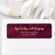 Elege a sua papelaria de casamento com o nosso estilo elegante e minimalista de etiqueta de endereço de retorno inspirado no design sofisticado do nosso fundo de estilo de aquarela em burgundy escuro e série de letras douradas. Esses adesivos personalizáveis adicionam um toque de elegância e personalização aos seus envelopes e papelaria de casamento.