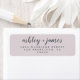 Chic, moderna e simples etiqueta de endereço de volta do casamento com seus nomes em uma caligrafia elegante de escrita manual, fora do preto, em um fundo pastel roxo. Basta adicionar seus nomes e endereços. Desenvolvido exclusivamente para você pelo Happy Dolphin Studio. Se precisar de ajuda ou produtos correspondentes, entre em contato conosco em happydolphinstudio@outlook.com. Estamos felizes em ajudá-lo a fazer seu casamento o dia mais bonito!