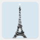 Uma torre Eiffel elegante coberta em luzes da cintilação decora esta etiqueta azul.