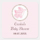 Um pram do vintage cercado dentro de uma beira marrom destaca esta etiqueta elegante do chá de fraldas. As bolinhas brancas subtis imprimem contra um rosa macio para adicionar um olhar clássico. Personalizado facilmente em um obrigado o etiqueta. Disponível em cores alternativas com produtos de harmonização.