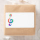 Chave musical desenhada a partir de camadas multicoloridas de cores do arco-íris sobre fundo branco.