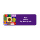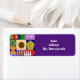 Essas etiquetas de endereço de retorno têm um design Bauhaus de formas e linhas fazer uma colagem em cores primárias e secundárias.