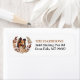 O lado esquerdo destas etiquetas de endereço de retorno apresenta um retrato de um belo cão Collie. A imagem é fechada dentro de uma bonito coroa floral e foliar de outono em tons de marrom, bronzeado e creme. Seu texto personalizado está em preto e marrom-ouro à direita.