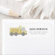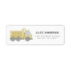 Deitem tudo, pessoal! Celebre o aniversariante com a sua coisa favorita no mundo - caminhões! Este adesivo de endereço de retorno com o tema da construção apresenta um caminhão de lixão com aquarela e uma tipografia divertida.