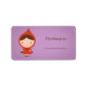 Meninas que amam o conto de fadas do capô de equitação vermelha vão adorar este rótulo bonito que tem uma garotinha em um carregando vermelho uma pequena cesta. Excelente para que eles rotulem seus livros e coisas!