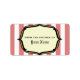 Um circo vintage inspirou a etiqueta da cozinha, apresentando um fundo de riscas vermelhas e brancas desbotadas. O texto personalizável diz "Da Cozinha de" Personalize com seu nome. Procure convites na Paperie de Jill.