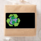 Esta etiqueta contém um símbolo de reciclagem à volta do planeta. Clique no botão Personalizar para alterar a cor do plano de fundo e adicionar seu próprio texto. Também pode ser usado como etiqueta de presente, etiqueta de livraria e muito mais.