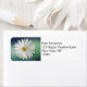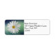 Uma foto serena de uma delicada solteiro com margarida. Mesas brancas leves e suaves com um centro amarelo brilhante. O fundo é uma cor azul esverdeada.