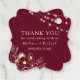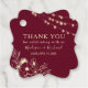 Etiqueta de favor romântica com um fundo borgonha profundo, luzes de corda brilhantes e renda floral dourada. Personalize com seus nomes e data para um toque final carinhoso em lembranças de casamento, sacolas ou presentes. Perfeito para celebrações rústicas, outonais ou elegantes.