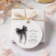 Etiquetas de agradecimento elegantes para chá de noiva que apresentam uma aquarela preta de um laço coquete, "com amor e gratidão" em um script chic, e o nome da noiva e a data do chá em letras modernas simples.