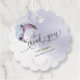 ETIQUETA DE Agradecimento | Lua crescente de ametista roxa deslumbrante flores roxas e azuis empoeirados pálidos com acentos de folhagem de eucalipto de sage pálido destacados por um fundo de lavagem de aquarela lilás pálido e dourado - Design por theBarefootBride ™.